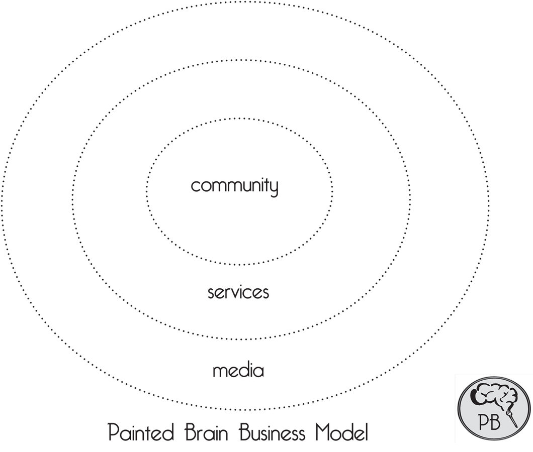 Painted Brain has operated on a service model of business with limited focus on fundraising. For much of its history, the project ran with volunteer mental health consumers and social work interns under the supervision of the founding director and founding CTO building an arts community and inclusive education program for aspiring coders and ux designers. Through the internship, Painted Brain developed an effective model for art group interventions for psychiatric populations that has been shown to increase connection and trust and to decrease anxiety.