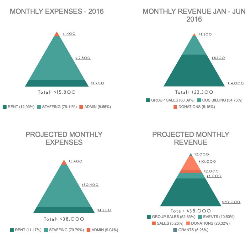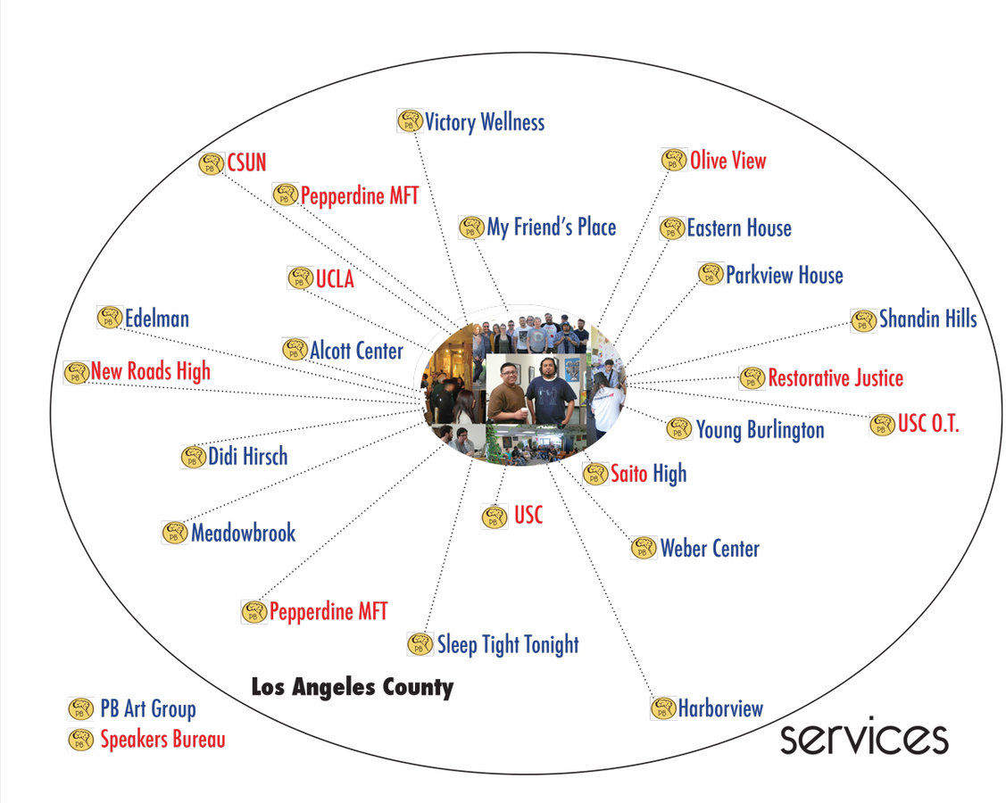 Painted Brain generates operational costs by contracting weekly art group services to local psychiatric facilities and treatment centers and through an LA County contract for peer-to-peer contact and outreach. These sources pay for our community center facilities and staff. Current operating budget is about $12,000 per month.