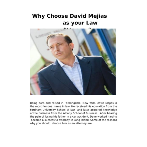 Several legislatures are now in place in the Long Island region to mitigate the incidence of domestic abuse and sexual offence; this is the product of the continuing struggle of David Mejias, the competent prosecutor. He is a lawyer, primarily in the