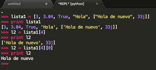 Para acceder a una lista dentro de una lista seguimos la siguiente sintaxis: