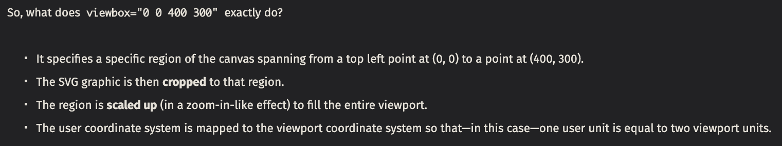 The viewBox is the coordinate system of SVG. Example