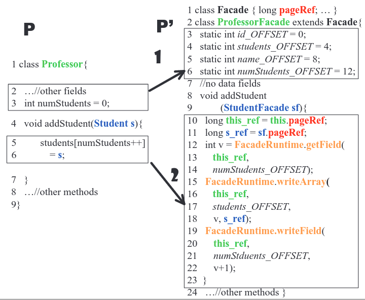 Facade is a non-intrusive technique to reduce the cost of the managed runtime by limiting the # of heap objects at the compiler level
