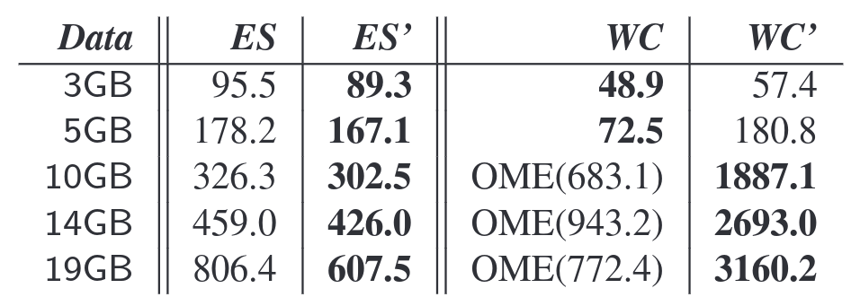 Hyracks Case Study: word count (WC) and external sort (ES) [shared-nothing machines]
