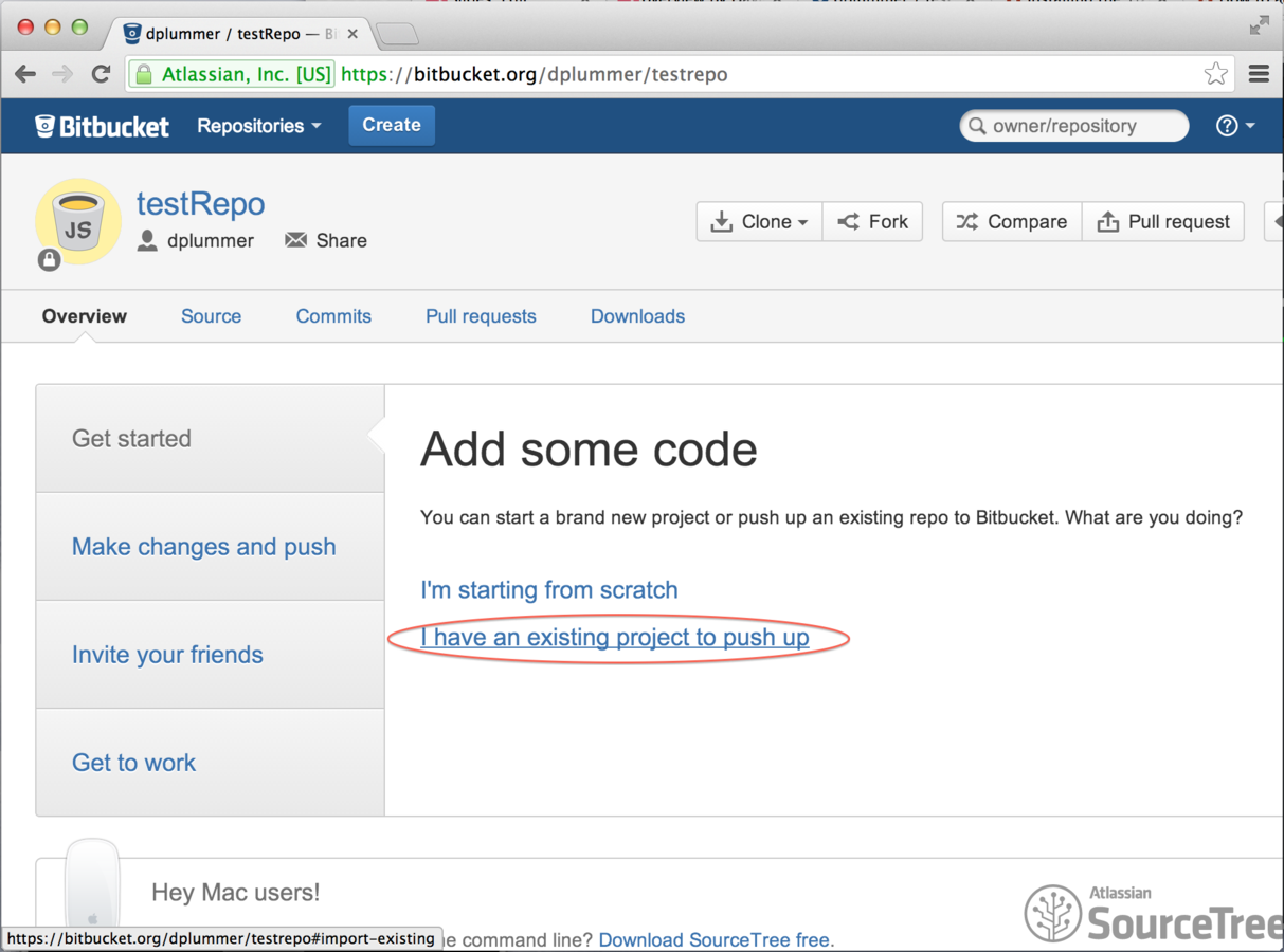 Download Source Tree and create a repo from your alloy project using it instead of the command line. Push the repo to bitbucket (name the repo alloy_2_optional_#your_name#) and invite me to the repo with read access.