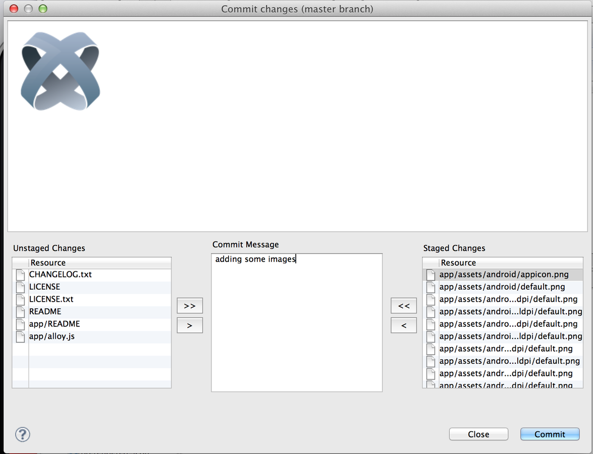 Now that your project is tied to a bitbucket, you can use Titanium Studio to push your changes using the Titanium Studio UI.