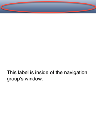 The navigation group adds a navigation bar to the top of your window. Remember that this bar is attached to the current window open in the navigation group, not the window that the navigation group is put inside of.