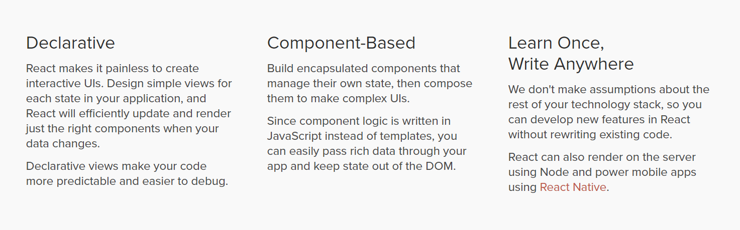 A good rule of thumb is that if a part of your UI is used several times (Button, Panel, Avatar), or is complex enough on its own (App, FeedStory, Comment), it is a good candidate to be a reusable component.