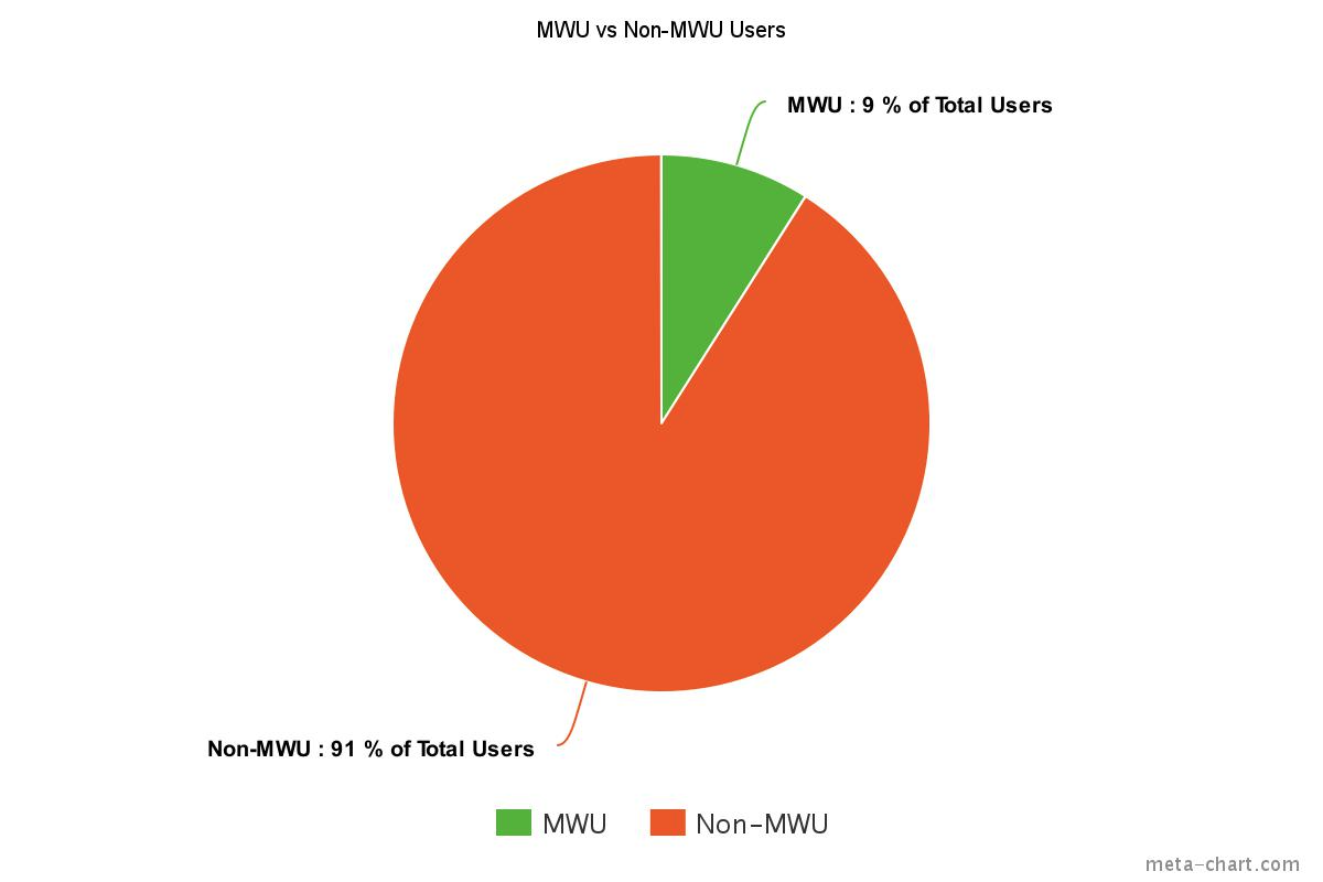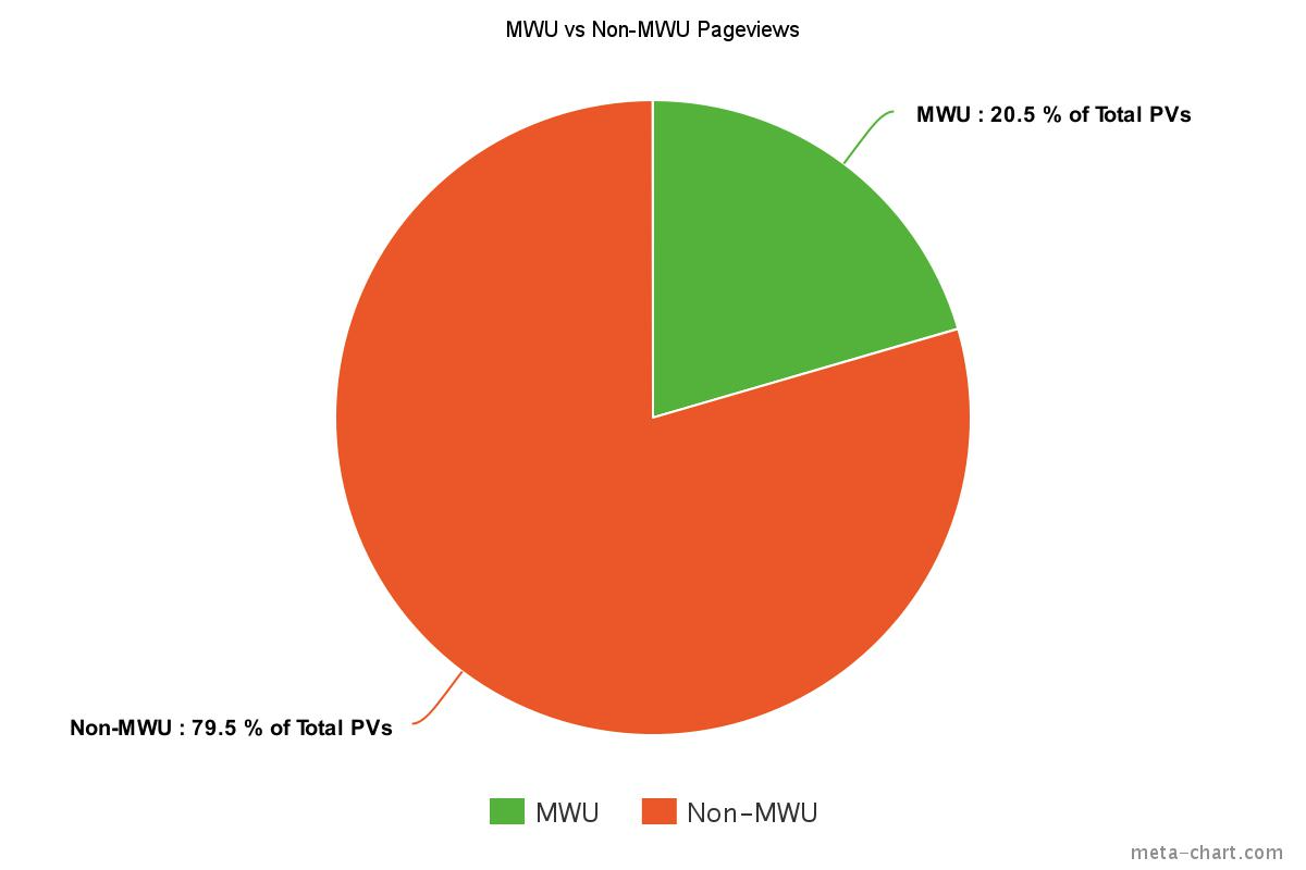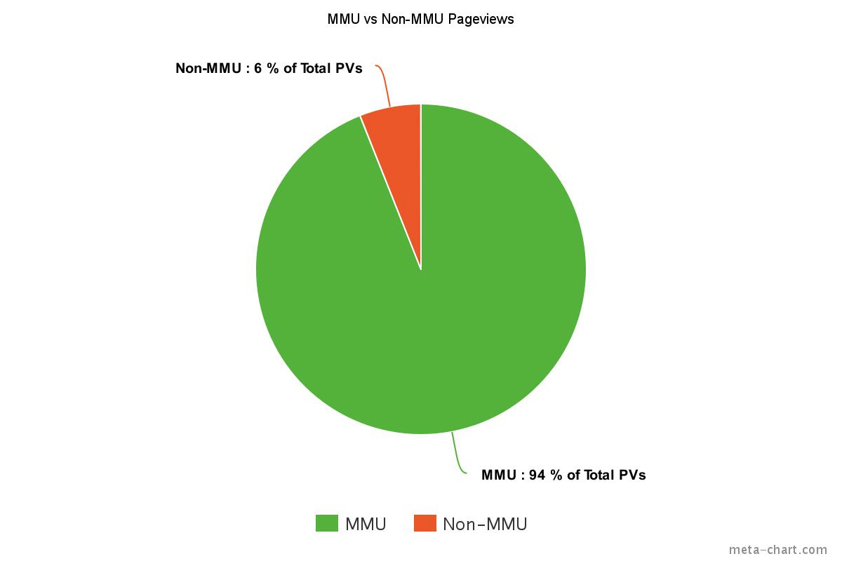 - 50% more users on Mobile, but are doing same # of PVs as Desktop.