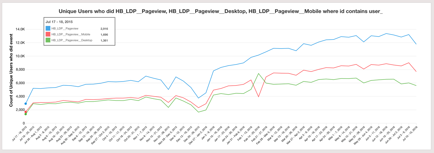 - Location: Views (Mobile%, Desktop%), Users (Mobile %)
