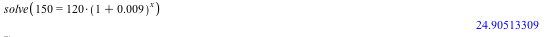 Jeg ved at startværdien er på 120 og slutværdien på 150. Jeg ved også at tilvæksten skal være på 0,9%. Disse oplysninger sætter jeg ind funktionen for eksponentiel udvikling og isolerer x.