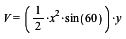 a) Først finder jeg arealet af grundfladen. Grundfladen er en ligesidet trekant og derfor er alle vinklerne 60 grader. Jeg kan ved hjælp af appelsin-formlen finde arealet af den vilkårlige trekant. Herefter sætter jeg de rigtige værdier ind og omskriver formlen.