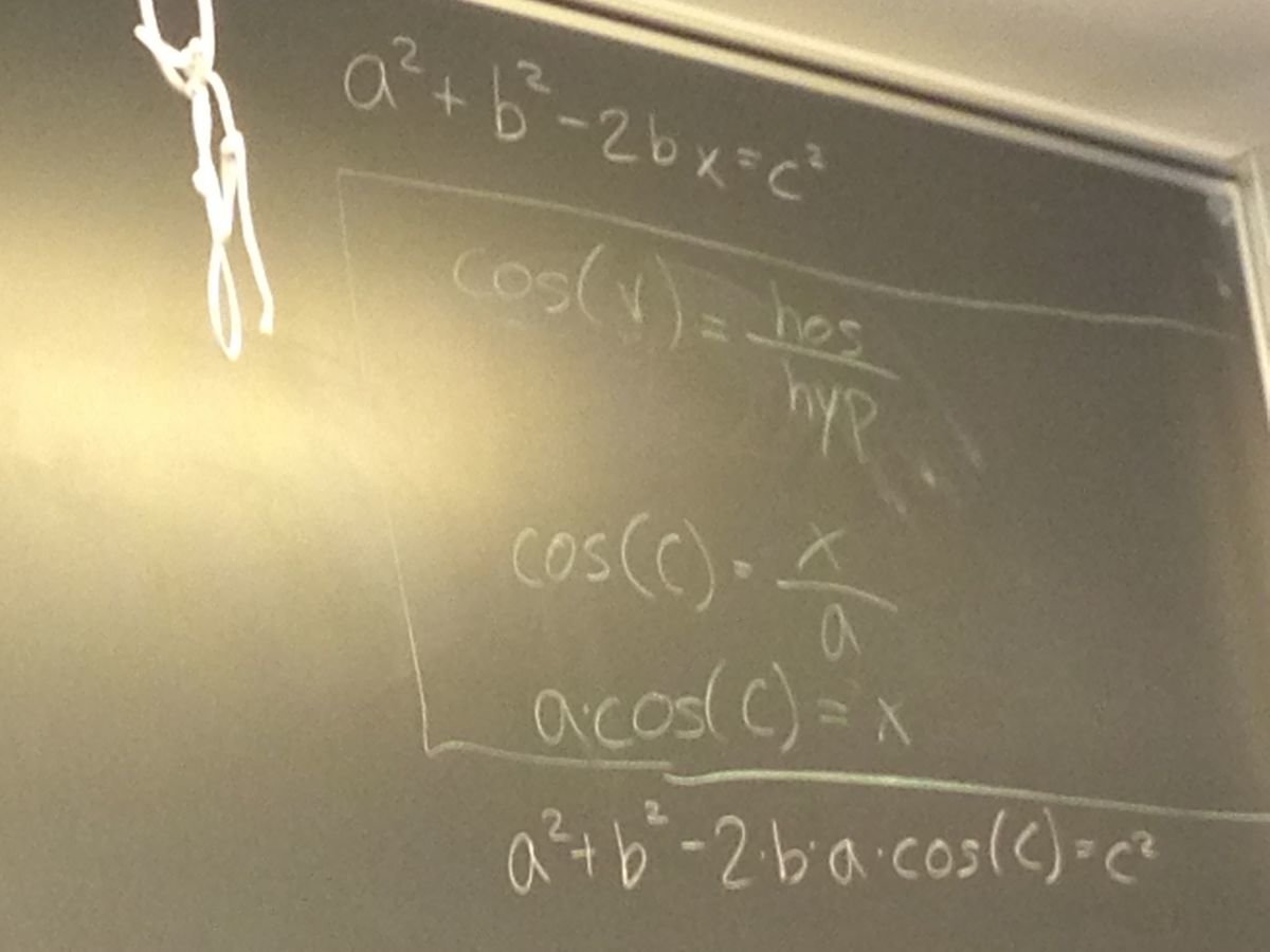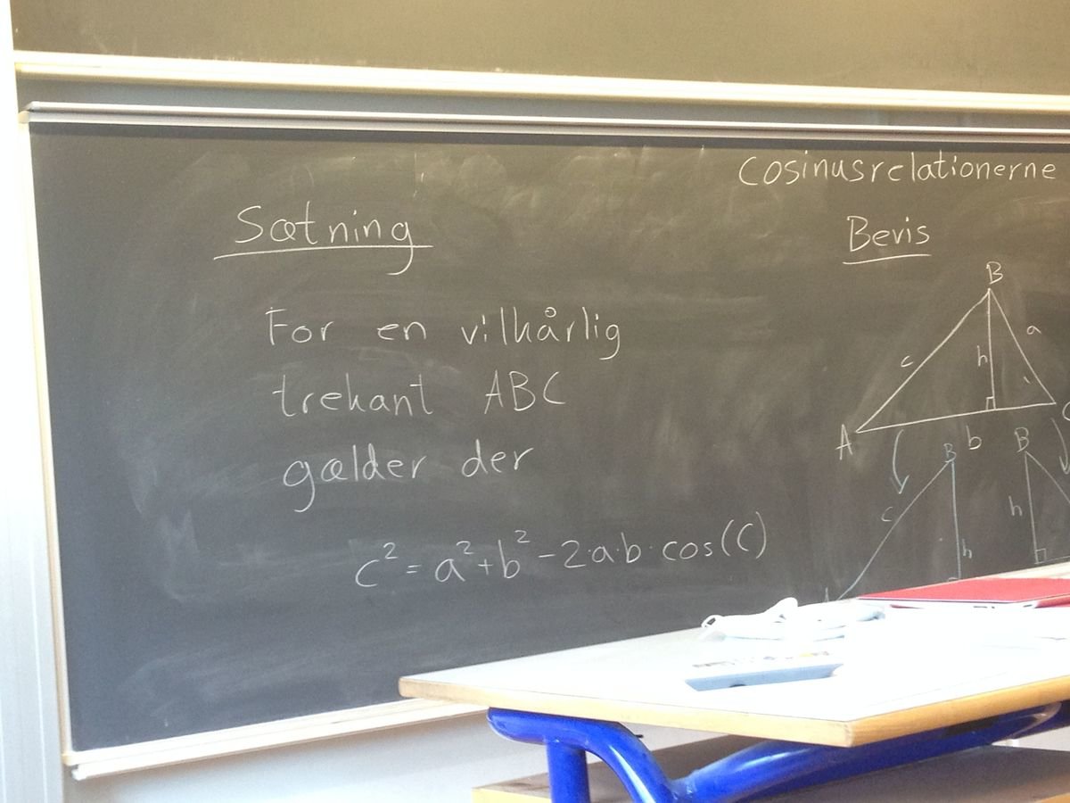 Nu kan jeg bruge cosinusrelationerne til at beregne siden c for GRØN.