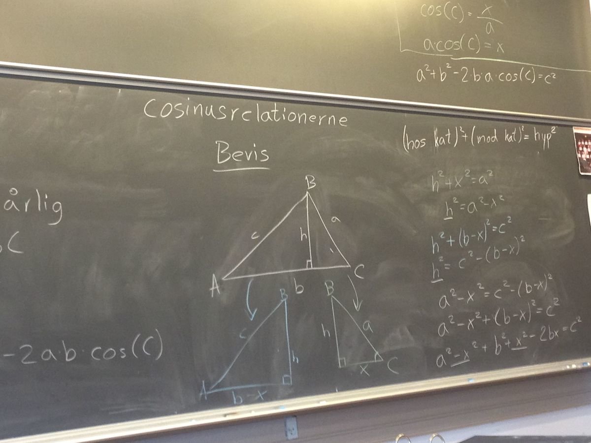Jeg har nu alle siderne på GRØN. Jeg kan nu igen bruge cosinusrelationerne, men til vinklen B.