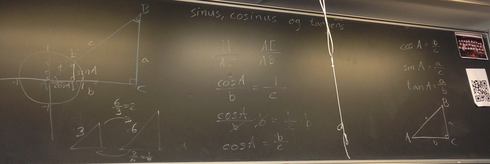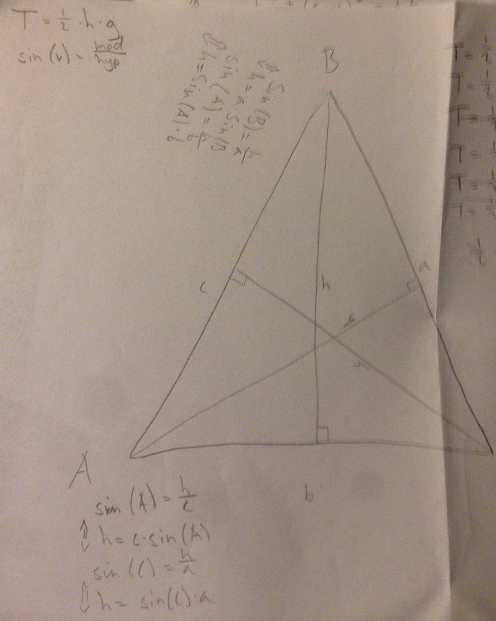 Da det er en retvinklet trekant så gælder: - vi kan altså beregne den vinkel som er tættest mod fætteren, "B". Jeg bruger Maple til de fleste udregninger.