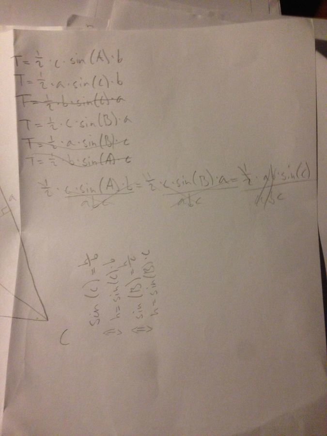 Indtil videre kender jeg kun længden på én side på hver trekant. Siden er 24, og jeg har valgt at kalde den for "b". Jeg mangler dog stadig, siden a og en vinkel C. Jeg finder først ud af den manglende vinkel.