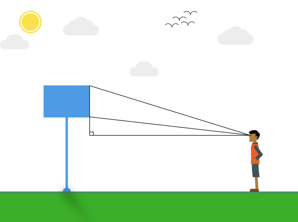 PINK har en grundlinje på 12, som jeg kalder "b". Den har også en vinkel på 90 grader, som jeg kalder for "C". Da jeg kender højden på manden, skiltstangens højde og selve skiltets højde, så kan jeg beregne siden "b":