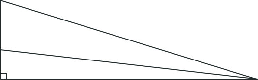 For at kunne beregne synsvinklen, har jeg valgt at lave én stor retvinklet trekant - referer til den som PINK. Trekanten er delt op i to trekanter, hvor den ene trekant er synsvinklen, som også er en vilkårlig trekant - den kalder jeg for GRØN. Den anden er en retvinklet trekant, som jeg kalder for RØD.