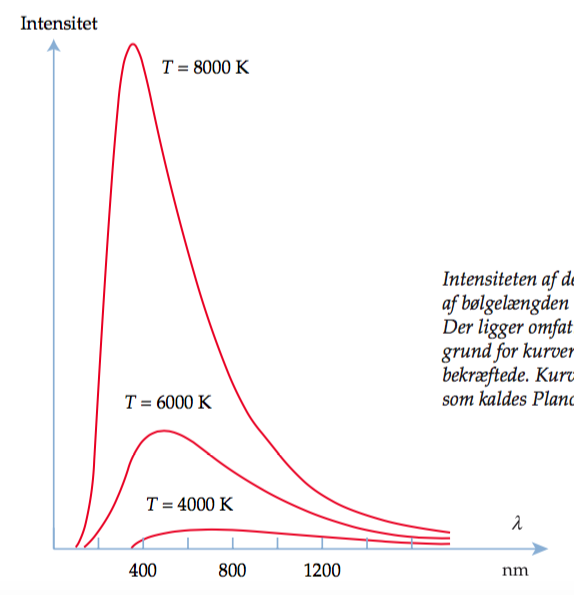 Jo varmere jo større effekt og mere kortbølget