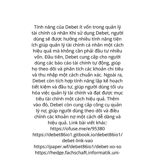 Website: https://hedge.fachschaft.informatik.uni-kl.de/s/qrZLiP601 Tính năng của Debet ít vốn trong quản lý tài chính cá nhân Khi sử dụng Debet, người dùng sẽ được hưởng nhiều tính năng tiện ích giúp quản lý tài chính cá nhân một cách hiệu quả mà kh