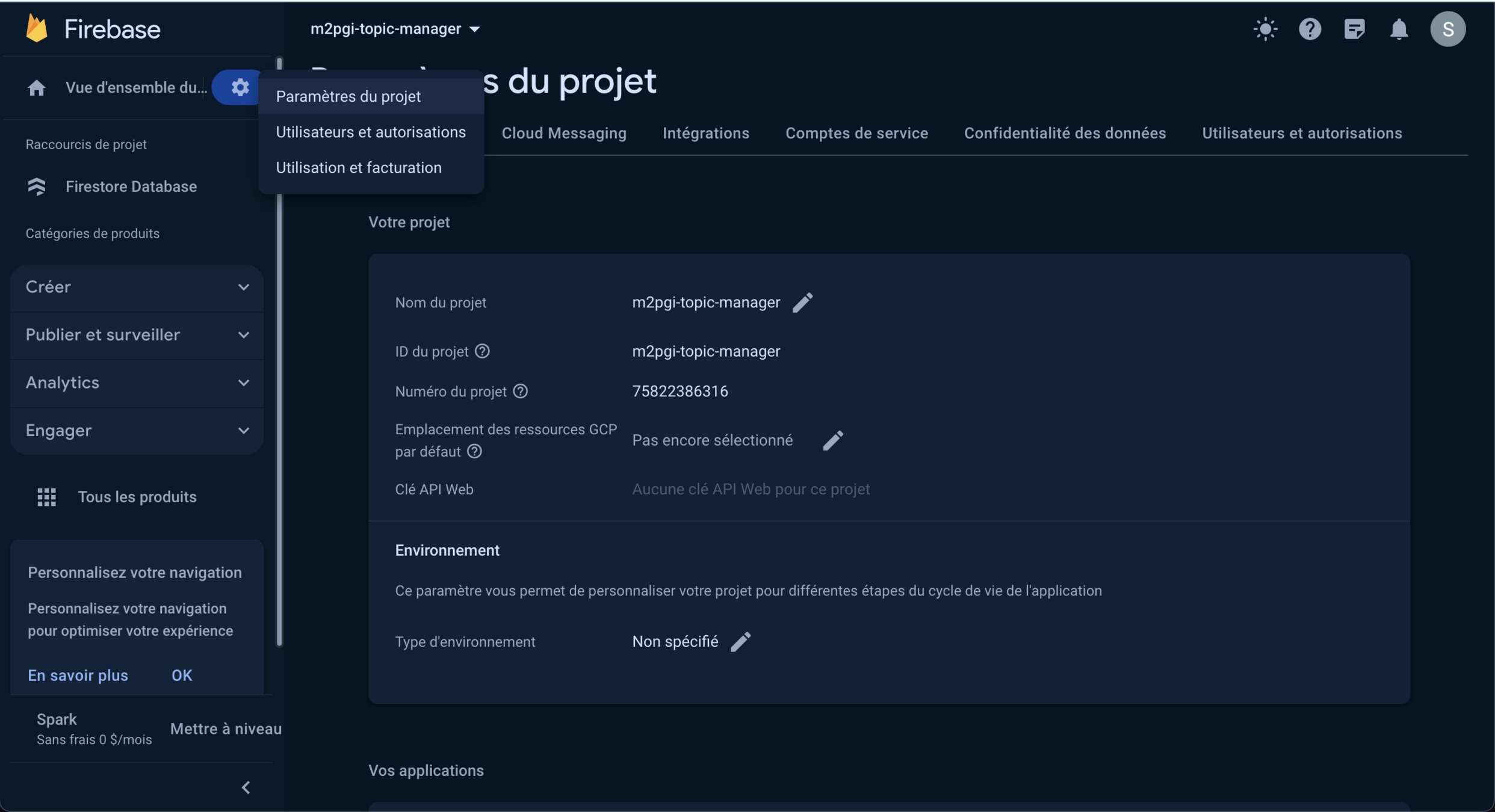 };- Configurer l'accès à la firebase en renseignant ses fichiers environments