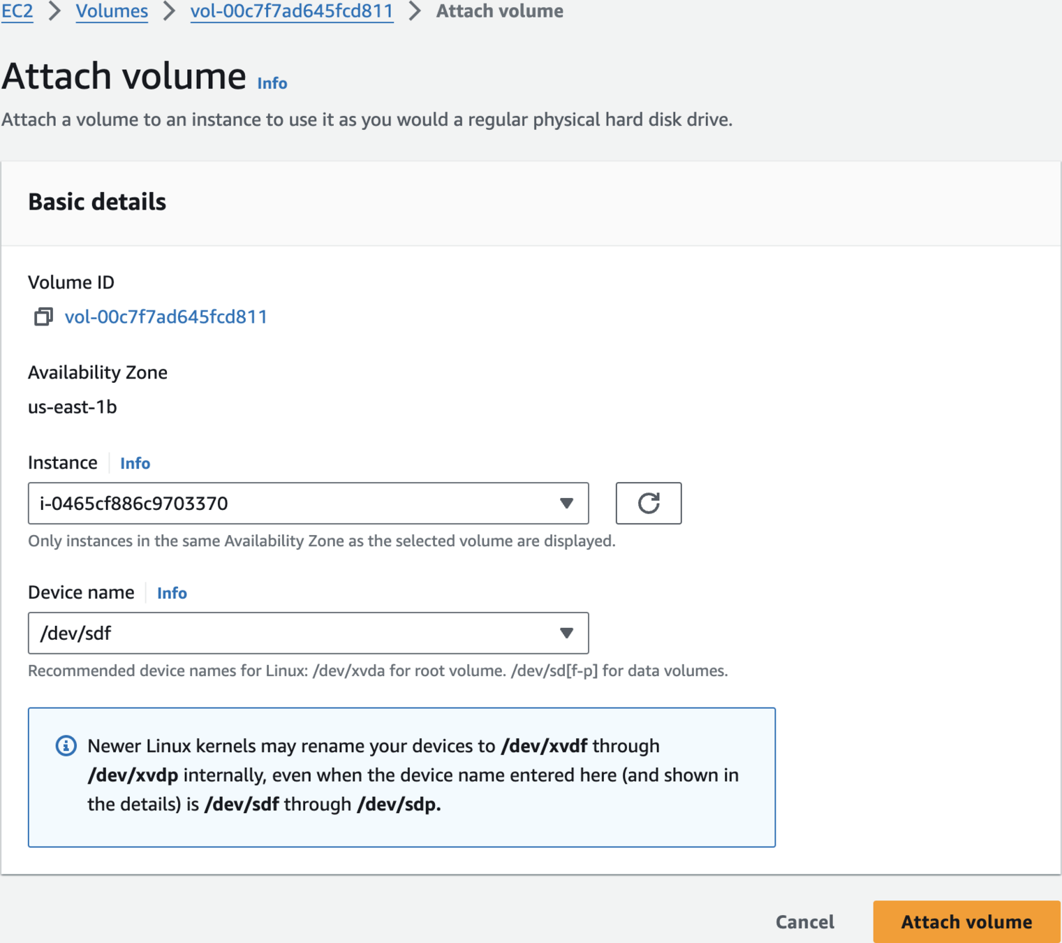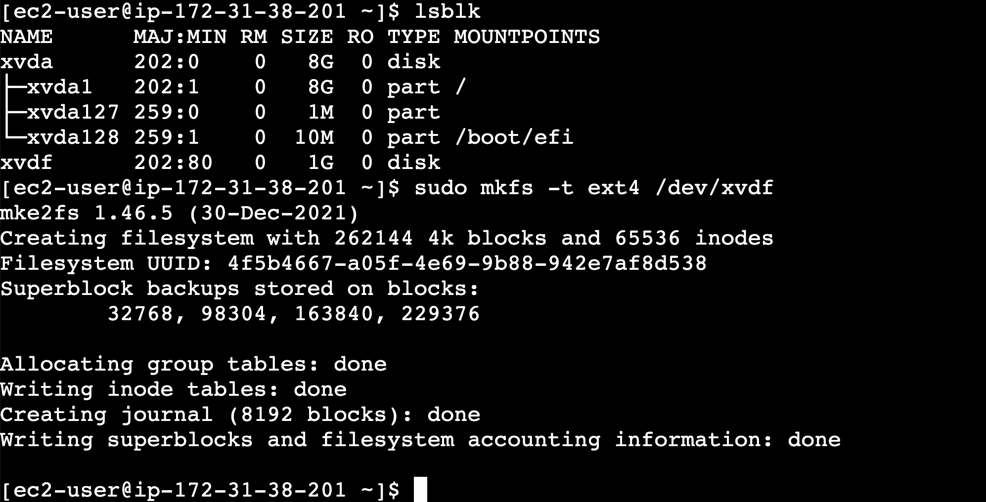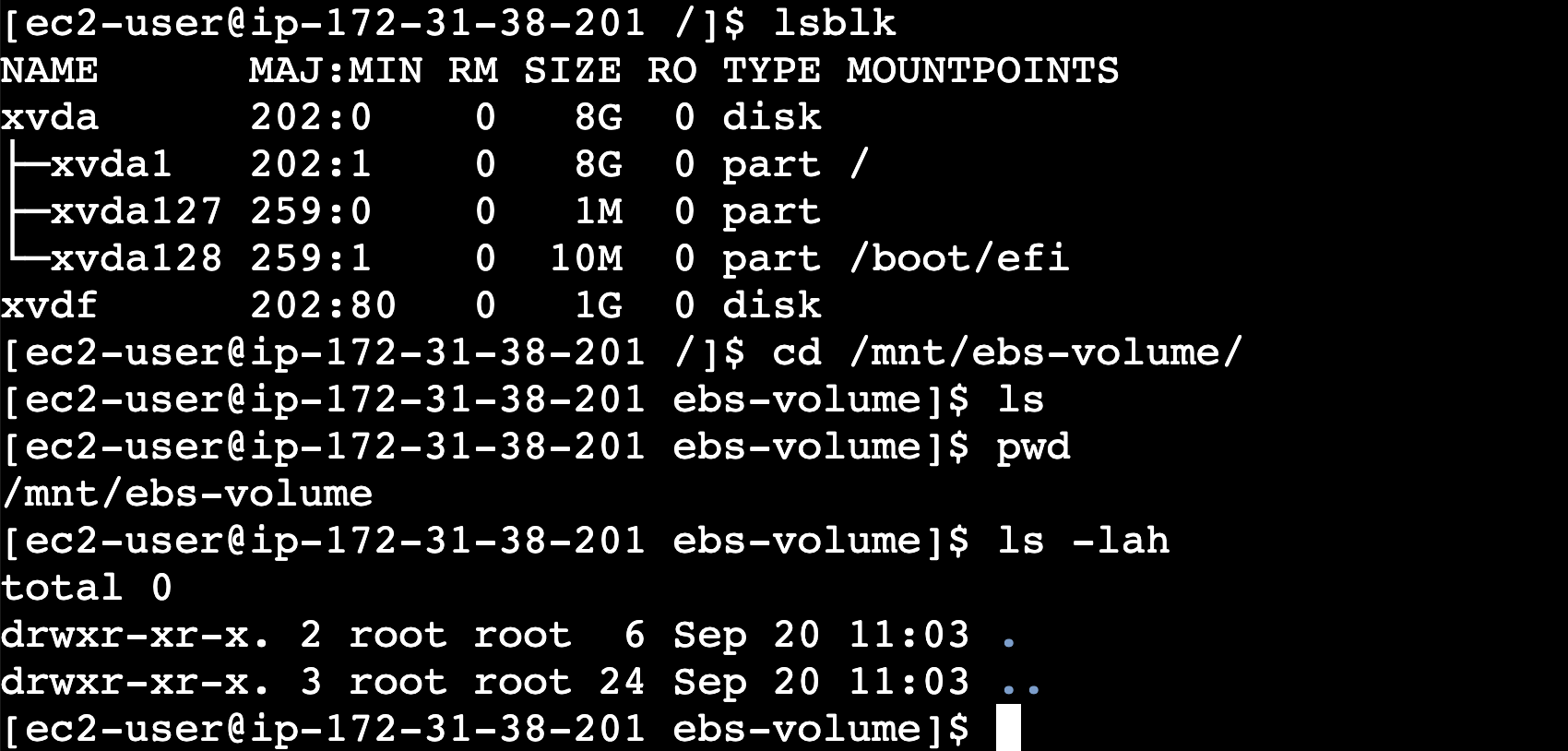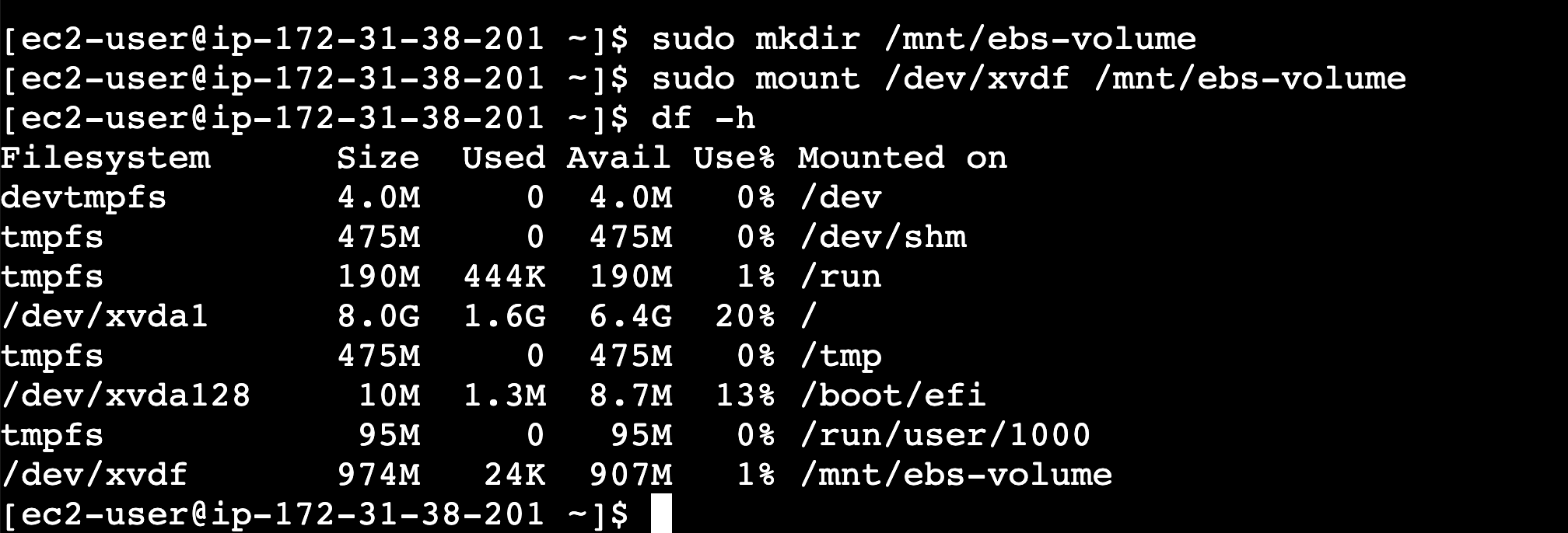 sudo mount /dev/xvdf /mnt/ebs-volume