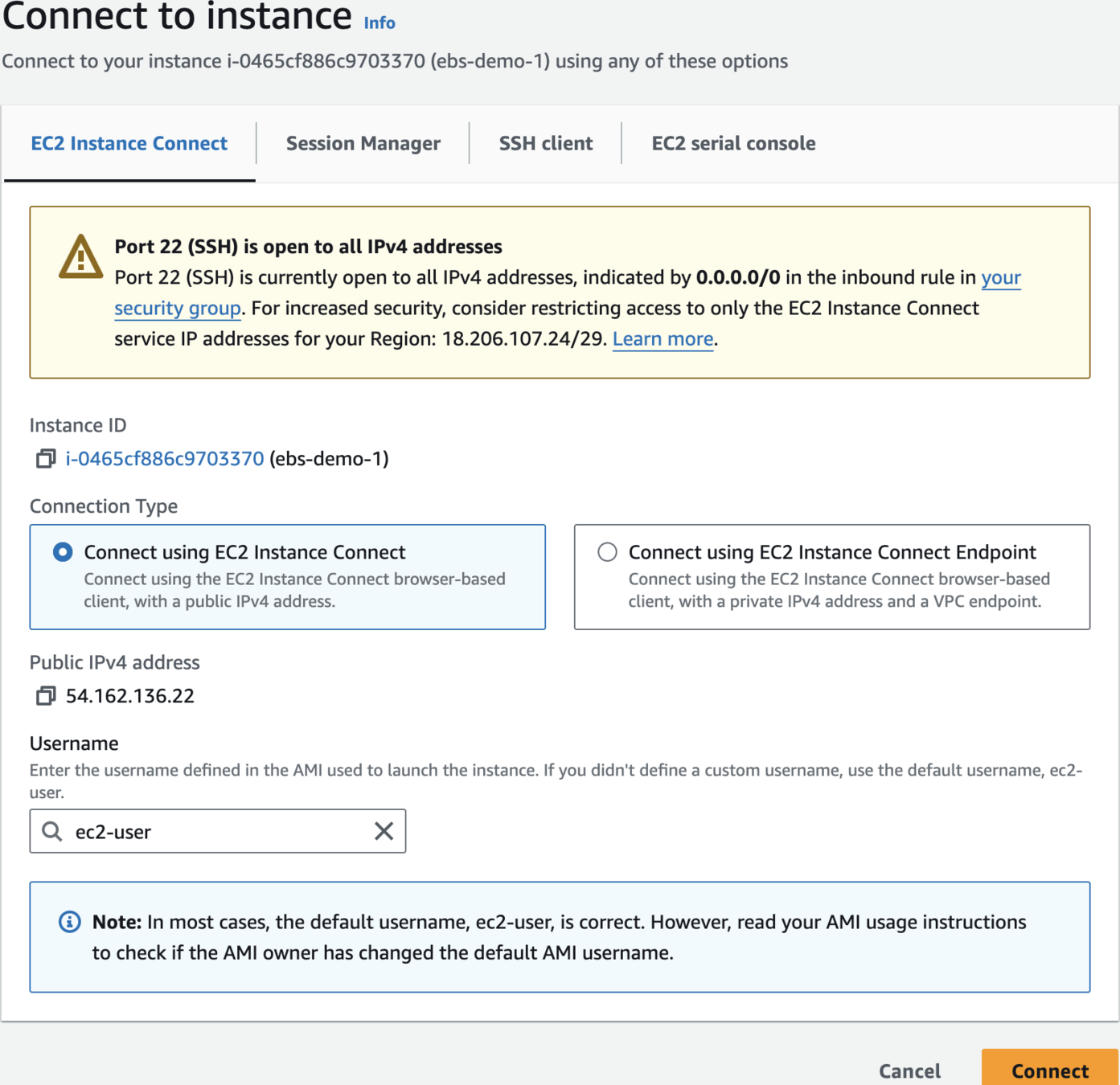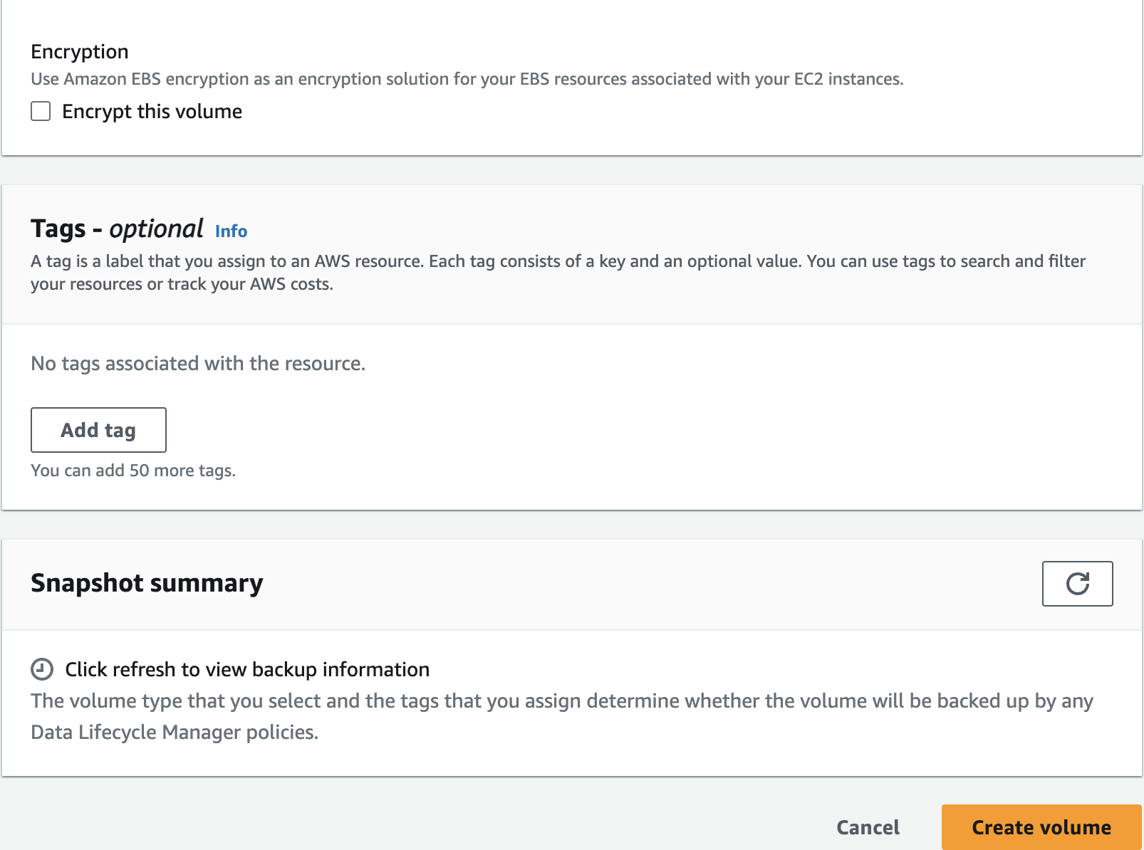 sudo chown ec2-user:ec2-user /mnt/ebs-volume