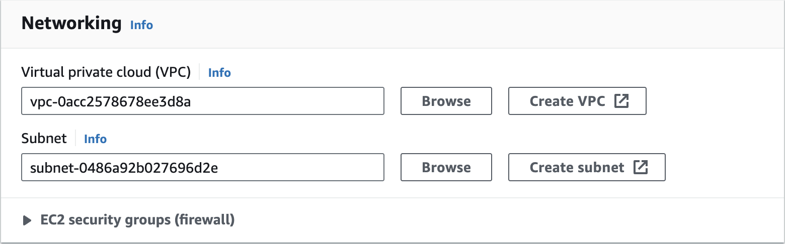 Create an Amazon EMR Cluster as follows - Networking