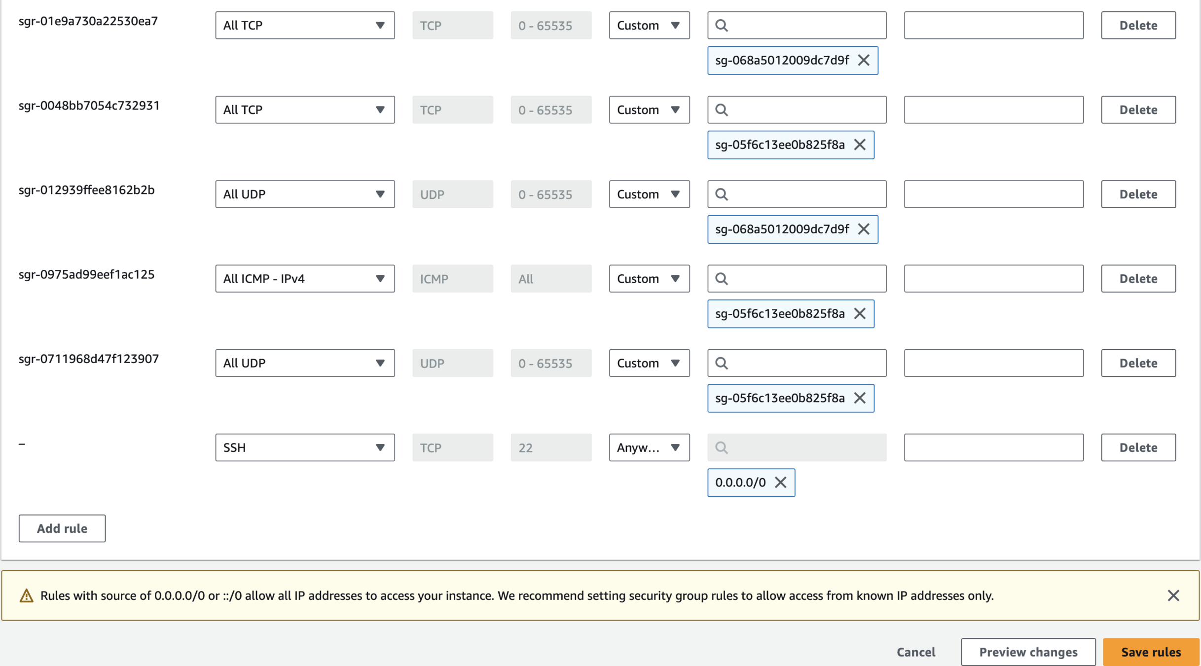 Edit Inbound Rules and Save