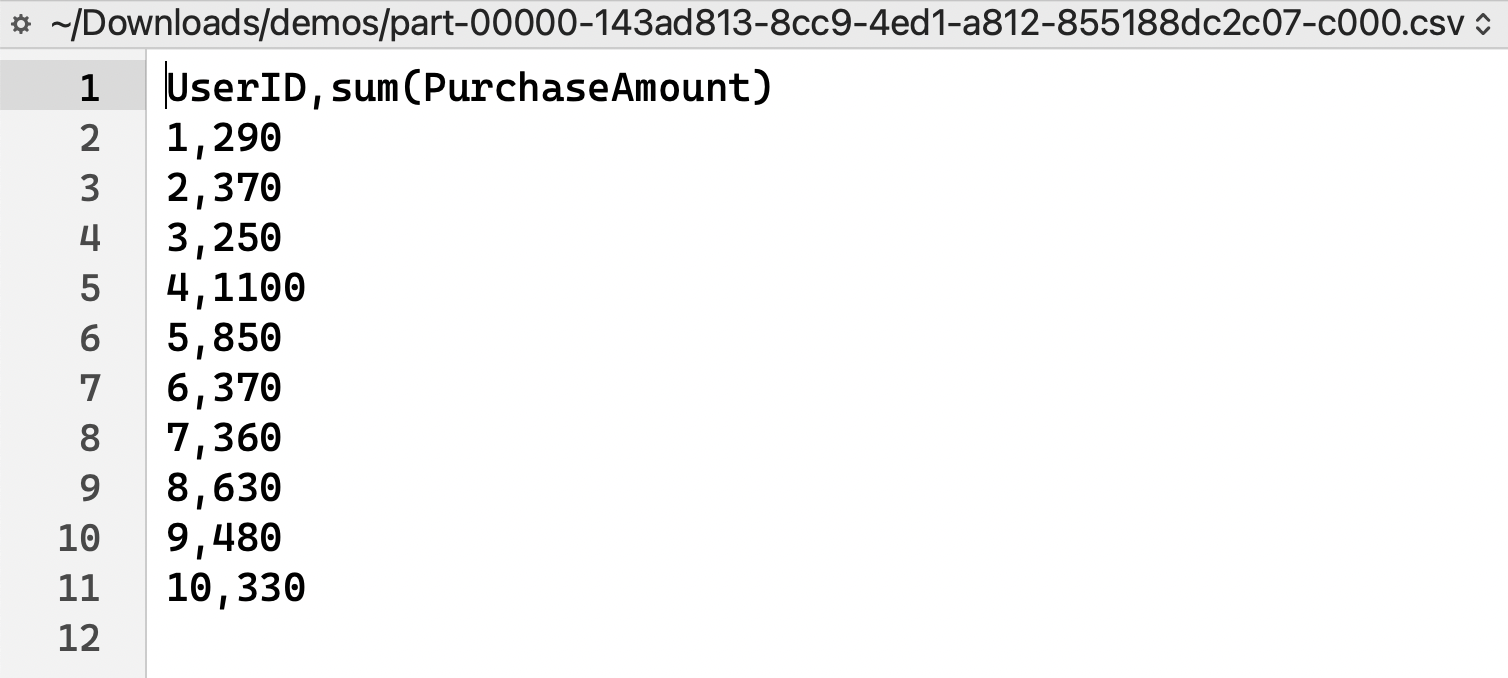 aggregated_df = filtered_df.groupBy("UserID").sum("PurchaseAmount")