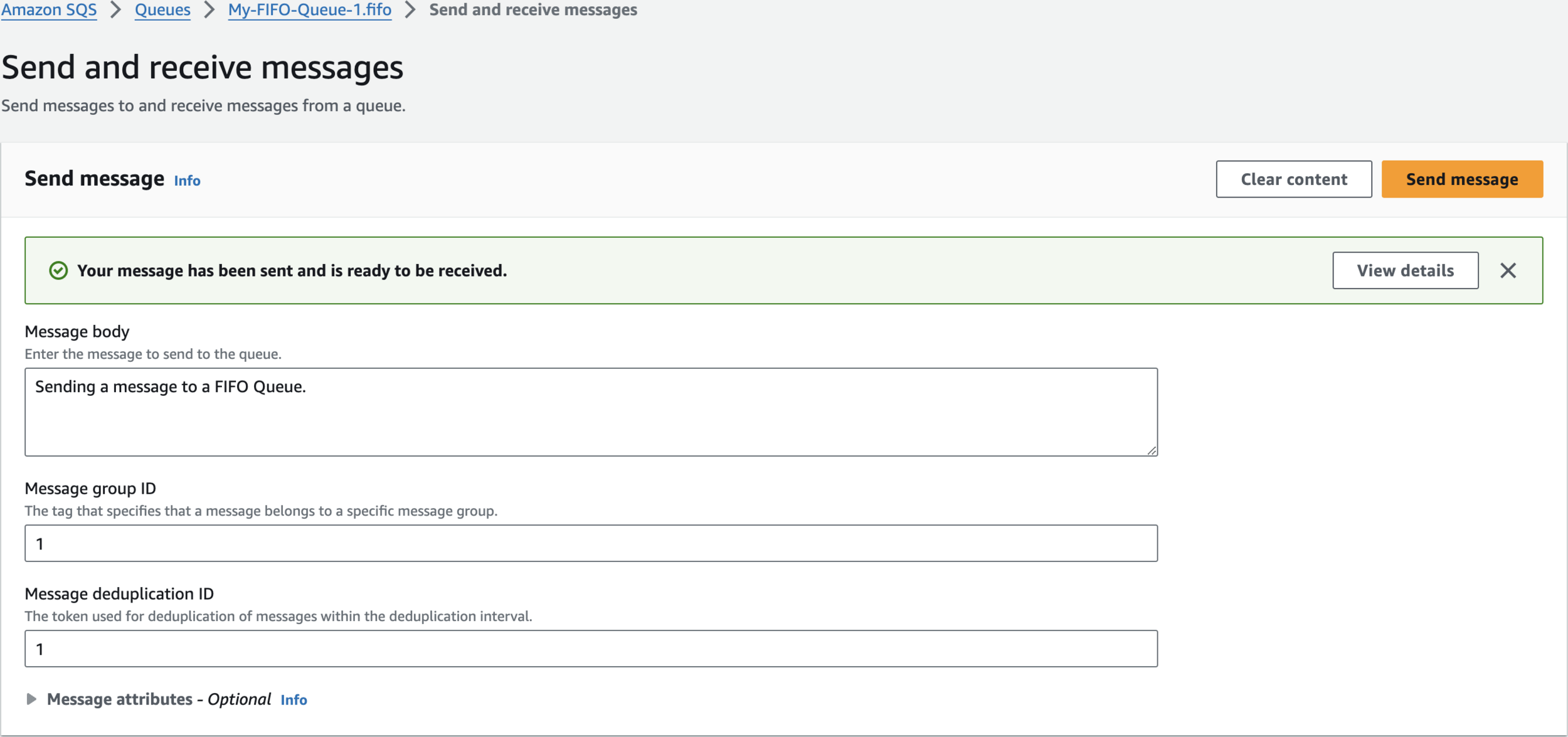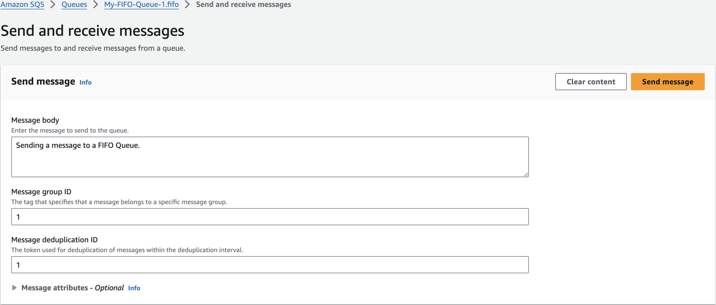 Sending a message to a FIFO Queue.