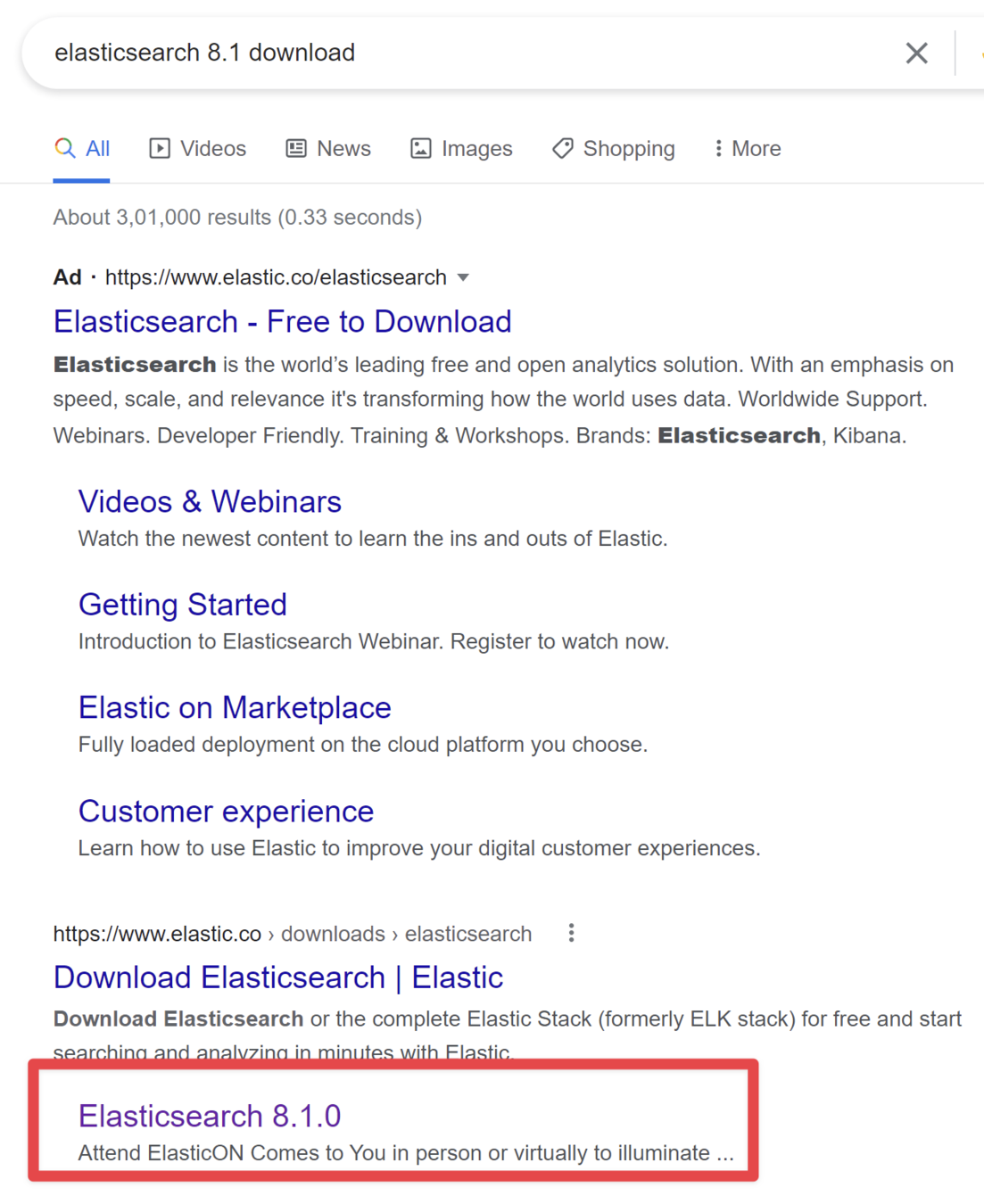 Extract and Unzip elasticsearch-8.1.0-windows-x86_64.zip