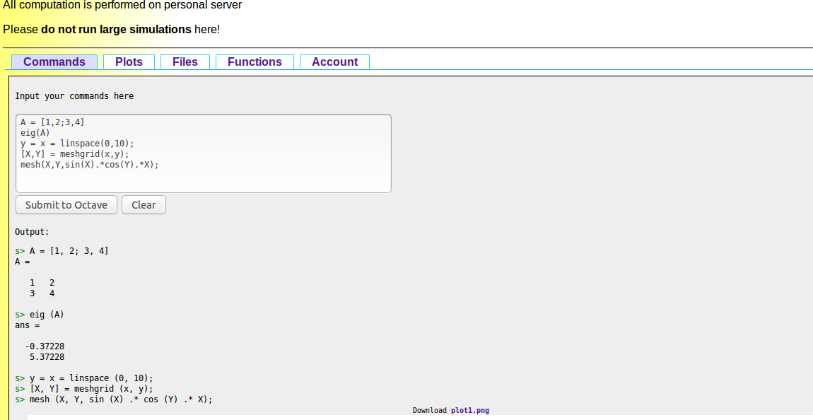 The project was based on the ideas from a similar web service, which contained a web interface Octave, written in CGI.