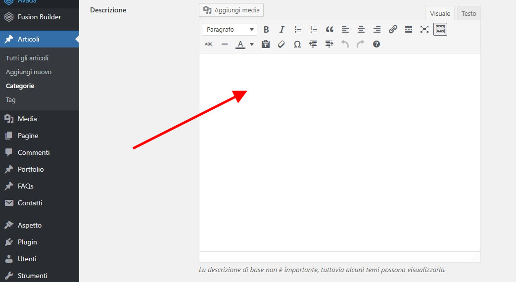- permetta di visualizzare un testo descrittivo nella pagina di categoria (come in una comune pagina o comune post).
