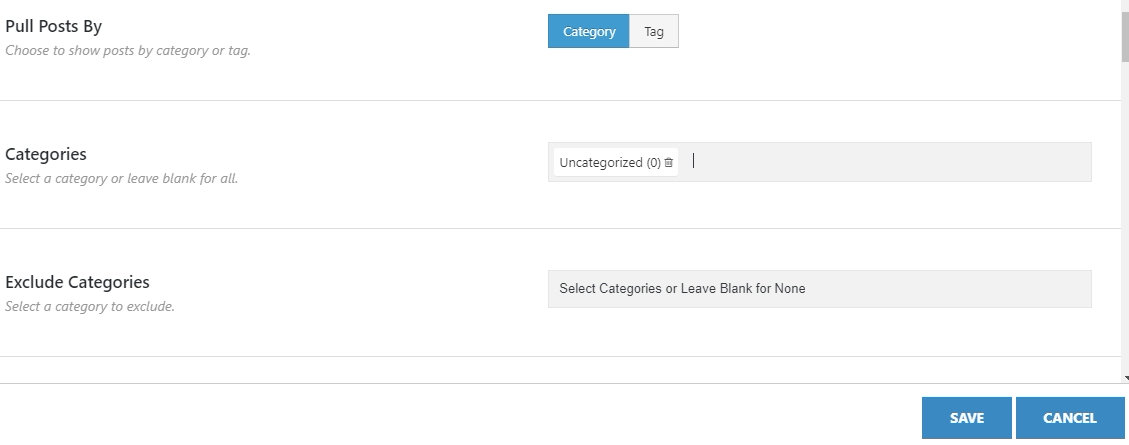 - consenta di inserire i post di una determinata categoria all'interno di una pagina tramite builder (come in una categoria).