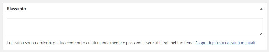 - Estratto del contenuto (meglio se viene visualizzato il campo riassunto di WordPress)