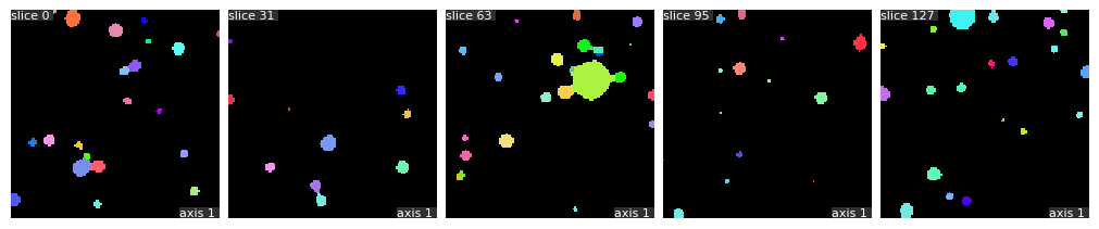 qim3d.viz.slices(labeled_volume, axis=1, cmap=cmap)