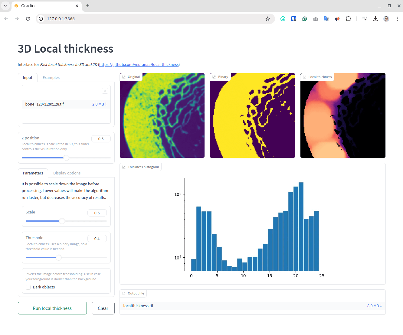 lt_fly = qim3d.processing.local_thickness(fly, visualize=True, axis=0)