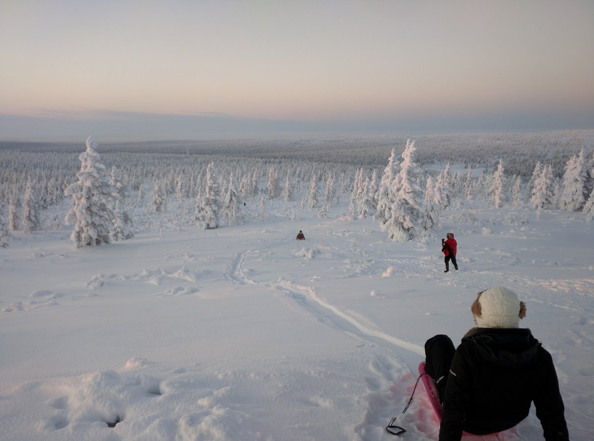 We climbed a big hill and sledded back down