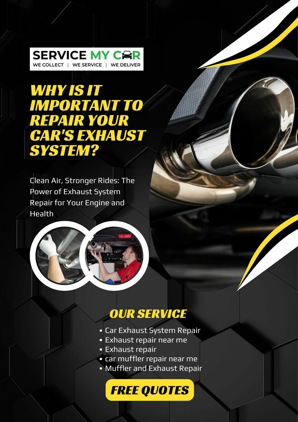 If you are looking up “exhaust repair near me” or a trusted “muffler shop near me,” you should check out Service My Car to get expert inspections and repairs across the UAE. They also offer some of the best car exhaust system repair services in Dubai. Whether you’re after a simple exhaust repair or want to explore performance exhaust upgrades, choosing the right exhaust shop plays a big role in keeping your vehicle running well.