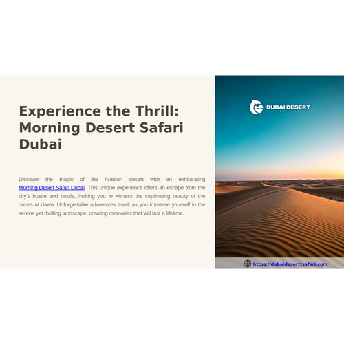 Experience the thrill of a <a href="https://dubaideserttsafari.com/morning-desert-safari/">Morning Desert Safari Dubai</a> at an affordable price starting from AED 150. Enjoy dune bashing in a 4x4, sandboarding, and camel rides under the morning sun. This adventure is perfect for those who prefer cooler temperatures and shorter tours. The package includes hotel pickup and drop-off, making it convenient and hassle-free. Ideal for families, solo travelers, and adventure lovers seeking a unique desert experience.