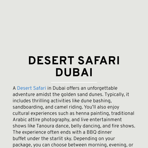 A Desert safari dubai is one of the most popular and exciting experiences you can have when visiting the city.