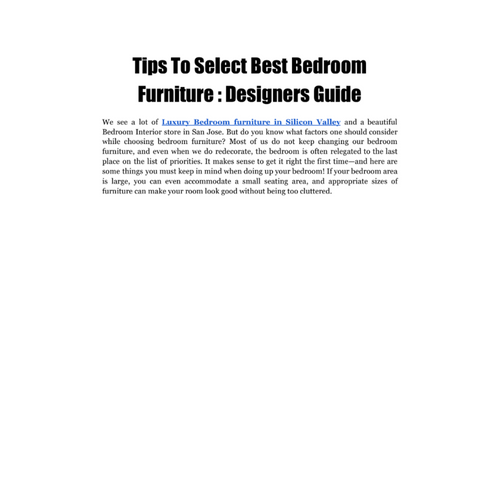 We see a lot of Luxury Bedroom furniture in Silicon Valley and a beautiful Bedroom Interior store in San Jose. But do you know what factors one should consider while choosing bedroom furniture? Most of us do not keep changing our bedroom furniture, and even when we do redecorate, the bedroom is often relegated to the last place on the list of priorities. For more details visit - https://www.designmartsv.com/product-category/bedroom/