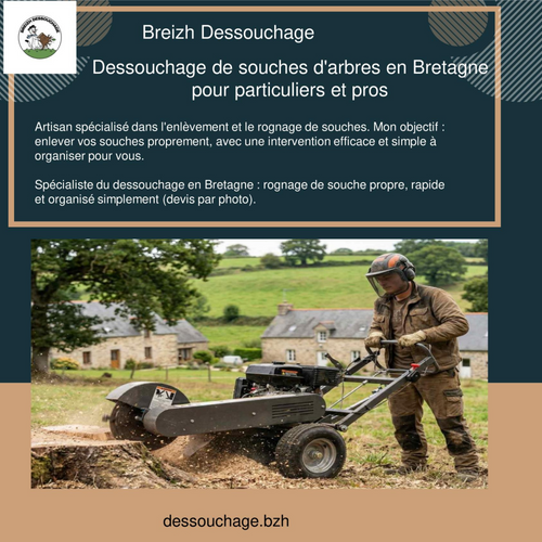 Dessouchage de souches d'arbres en Bretagne pour particuliers et pros