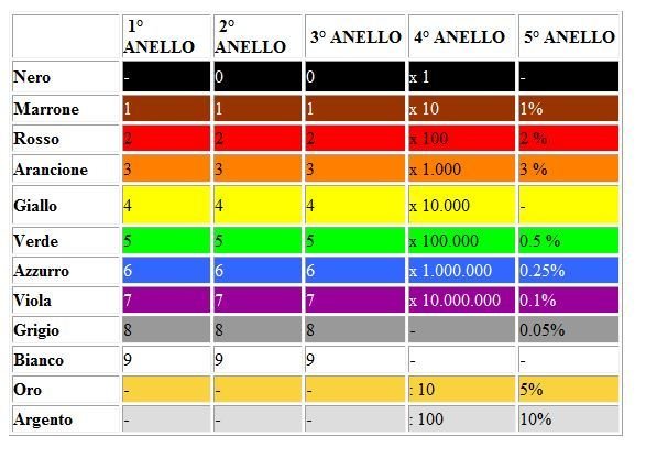 Per calcolare il valore di una resistenza partendo dai suoi colori