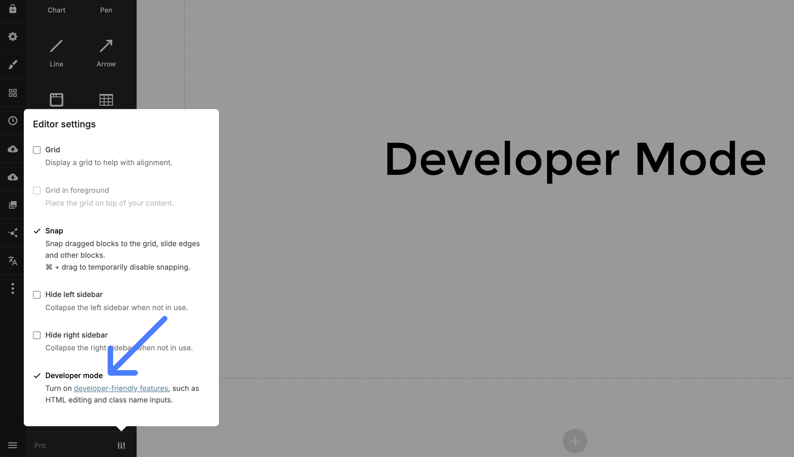 If you turn on the developer mode you can also add custom classes to any focused element. This is a convenient way to easily apply your CSS to specific elements.