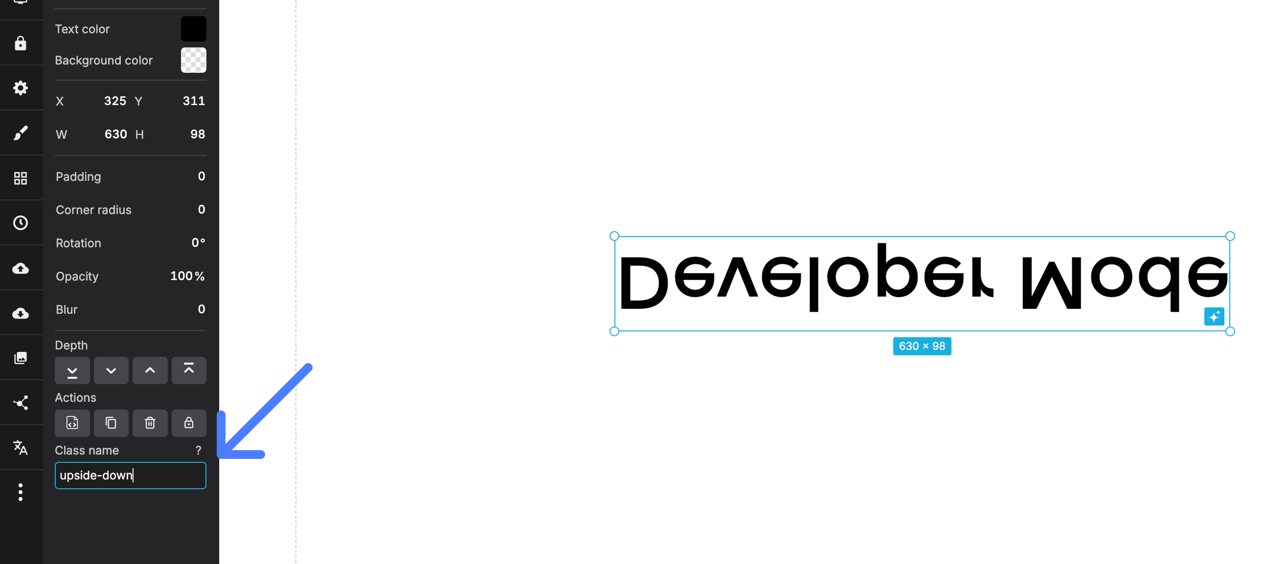 Here's an example that defines an "upside-down" class using custom CSS and applies it to a text block.