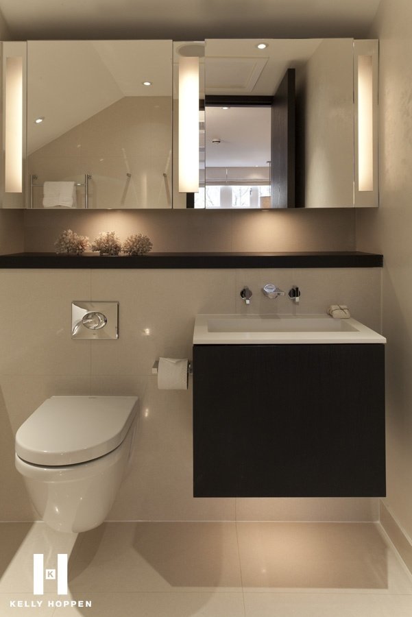 As the space will be limited for plumbing fixtures, both the toilet and sink could be fitted together with concealed plumbing work behind in the form of a block.