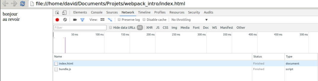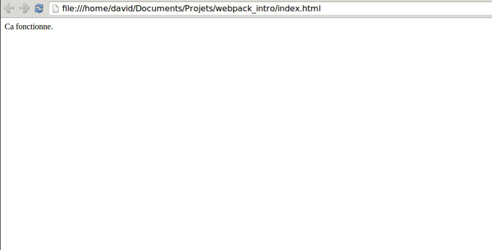 $ nodejs ./node_modules/webpack/bin/webpack.js$ vim entry.jsdocument.write("Ca fonctionne.");$ vim index.html<html>