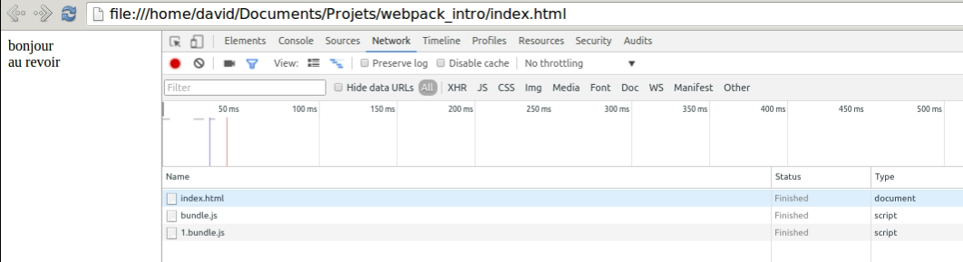 // création du bundleL'utilisation de require() générera un bundle.js sans monModule.js et effectuera un chargement ajax pour charger ce dernier.