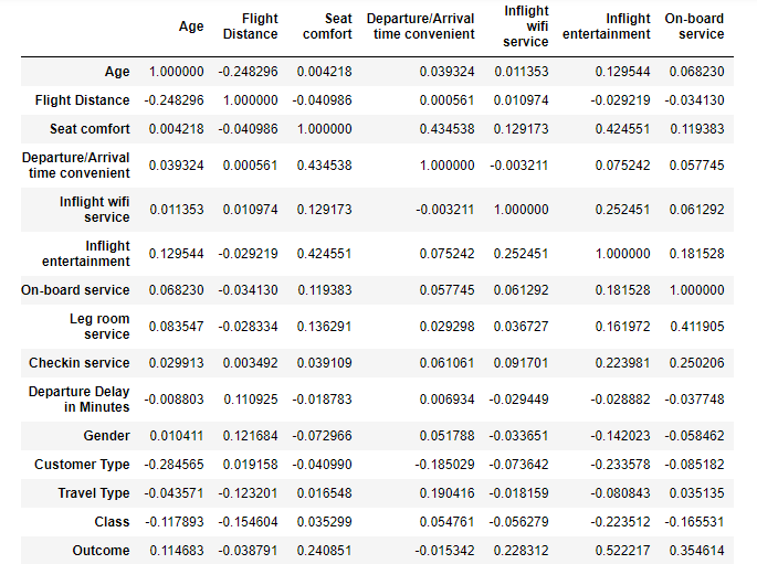 This is part of the correlation matrix. Note the different variables and the correlation values among each pair.